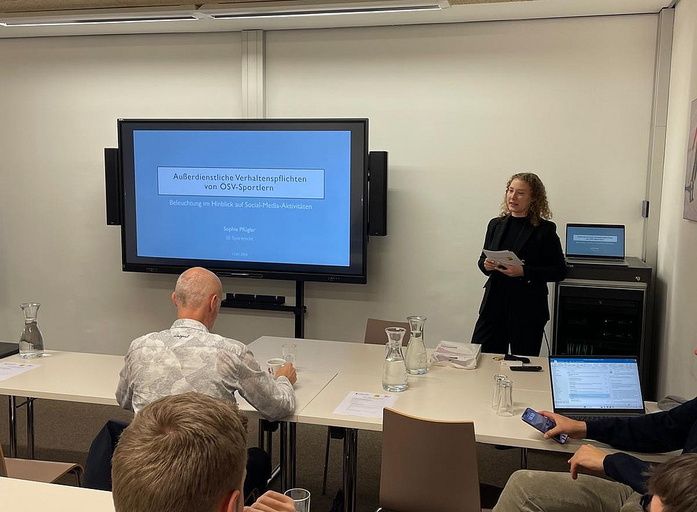 Unsere beiden studentischen Mitarbeiter:innen, Sophie Pflügler und Lukas Thurner, gestalteten dabei spannende Beiträge zu den Themen „Verwendung sozialer Medien durch Profisportler:innen“ sowie „Die Entscheidung des EuGH in der Rs Diarra“ und brachten ihre fachliche Expertise aktiv in das Seminar ein.